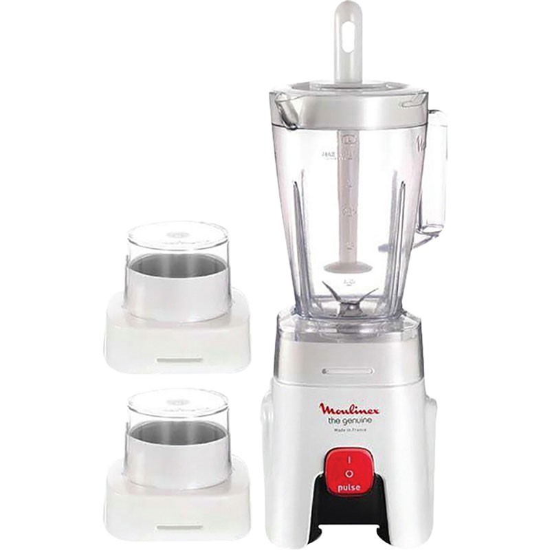 Le blender LM240141 New Genuine de Moulinex est doté d'un bol gradué d'une capacité de 1,25 litres avec Mix stick. Grâce à son Mix Stick vous pouvez mixer vos fruits sans liquide et les mélanger avec la spatule pour tout mixer de manière homogène. Jus, soupes, smoothies ou milk shakes il vous satisfera à tous les niveaux. Il dispose également d'un bouchon doseur pour ajouter des ingrédients durant la phase de mixage. Vous avez 1 vitesse et un bouton pulse pour contrôler la puissance d'utilisation de votre appareil. Le bol passe au lave vaisselle pour un maximum de confort.